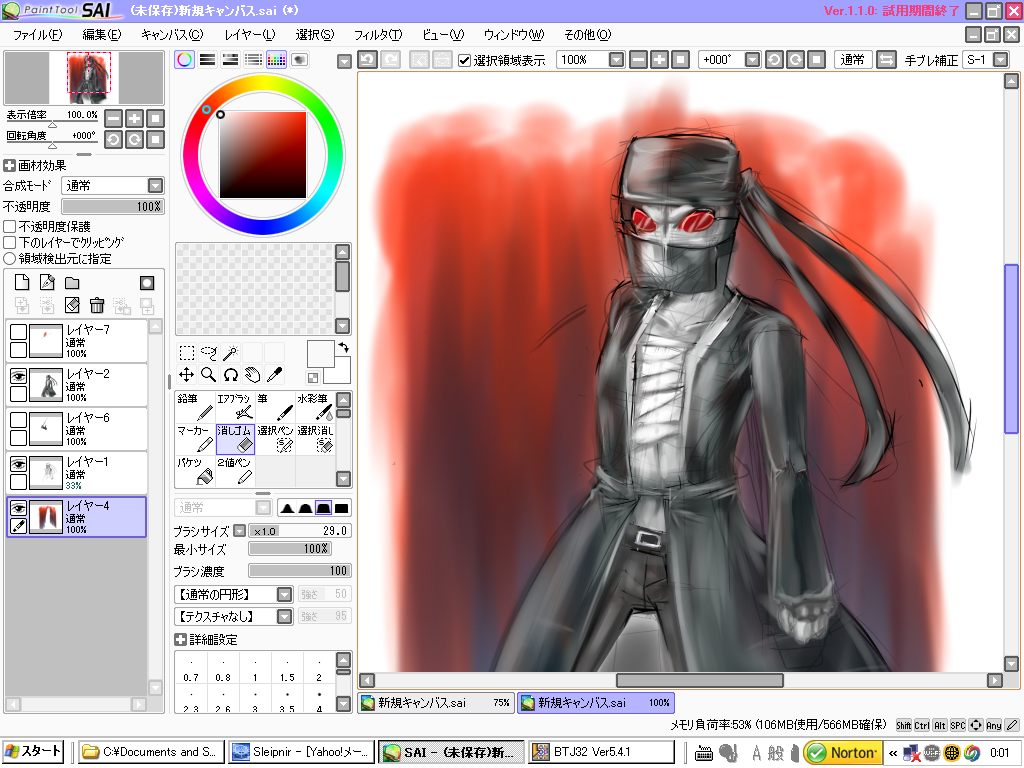 ●とりあえず試し描き。実質二枚しかレイヤは使ってません。あとは妹の落書き。