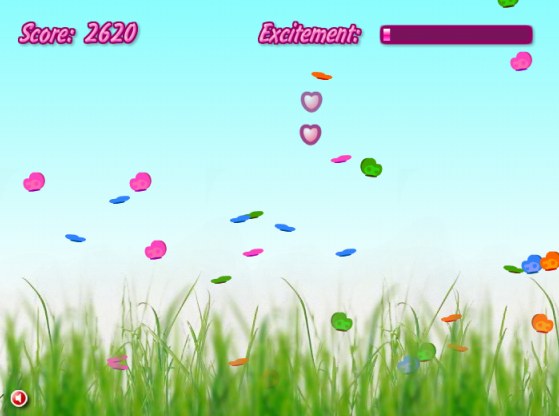 囲いゲーム。クリックし続けて同じ色の蝶だけ囲って指を離しましょう。
